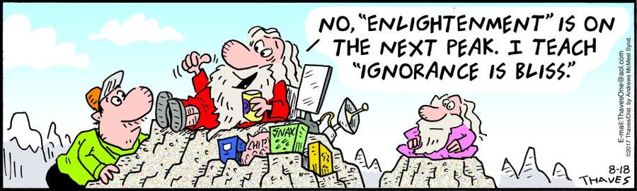 No, “enlightenment” is on the next peak. I teach “ignorance is bliss.”